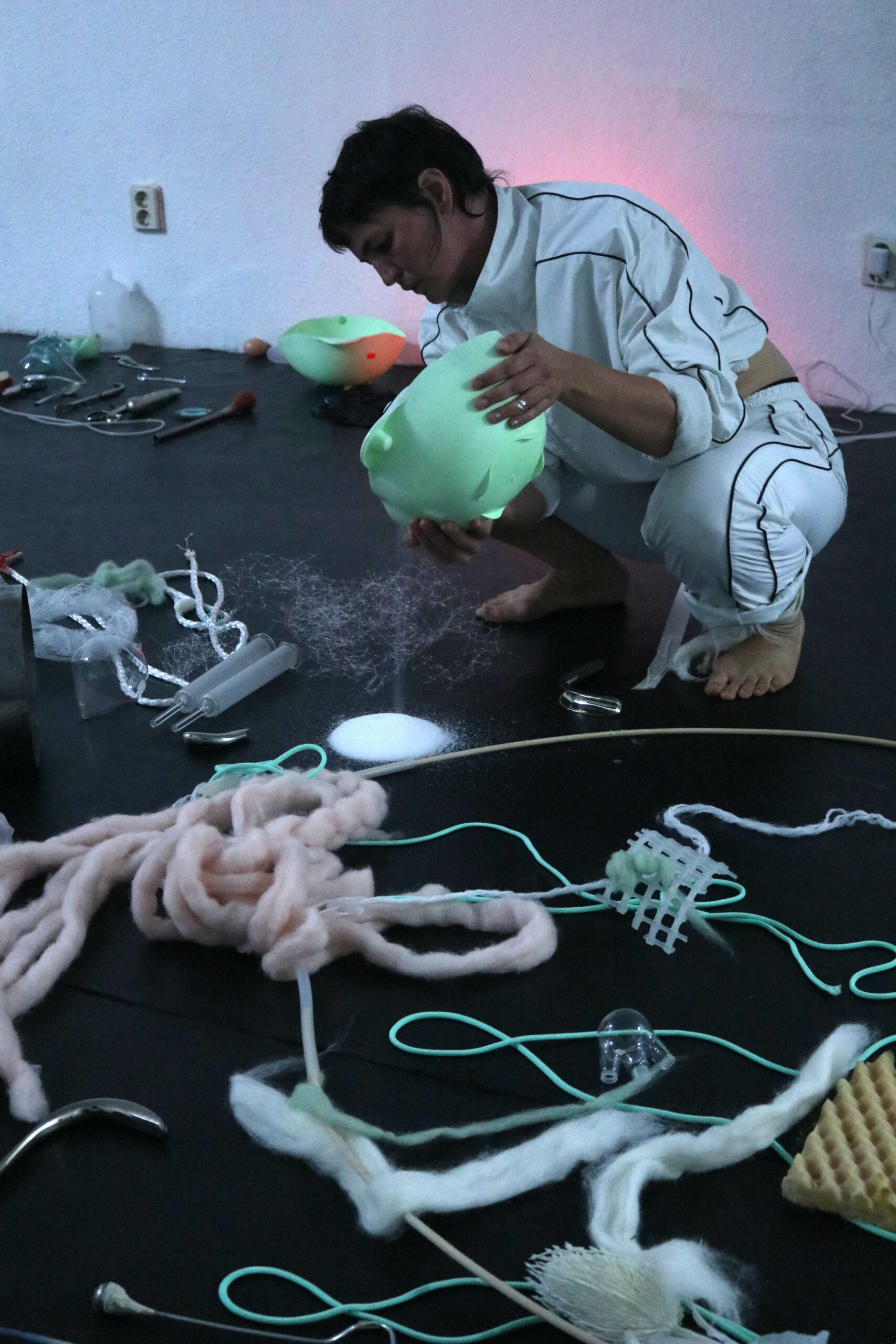 La performance aura lieu dans le cadre de Cartographies posthumaines. Cette soirée de performances invite des artistes à tracer les lignes mouvantes d’un monde qui ne se comprend plus comme un territoire humain fixe, mais comme un champ relationnel et élémentaire – traversé par des résonances, des fragilités technologiques et la vitalité du vivant. Ancrée dans la philosophie posthumaine affirmative de Rosi Braidotti, cette soirée refuse à la fois la nostalgie humaniste et les mirages techno-utopiques.